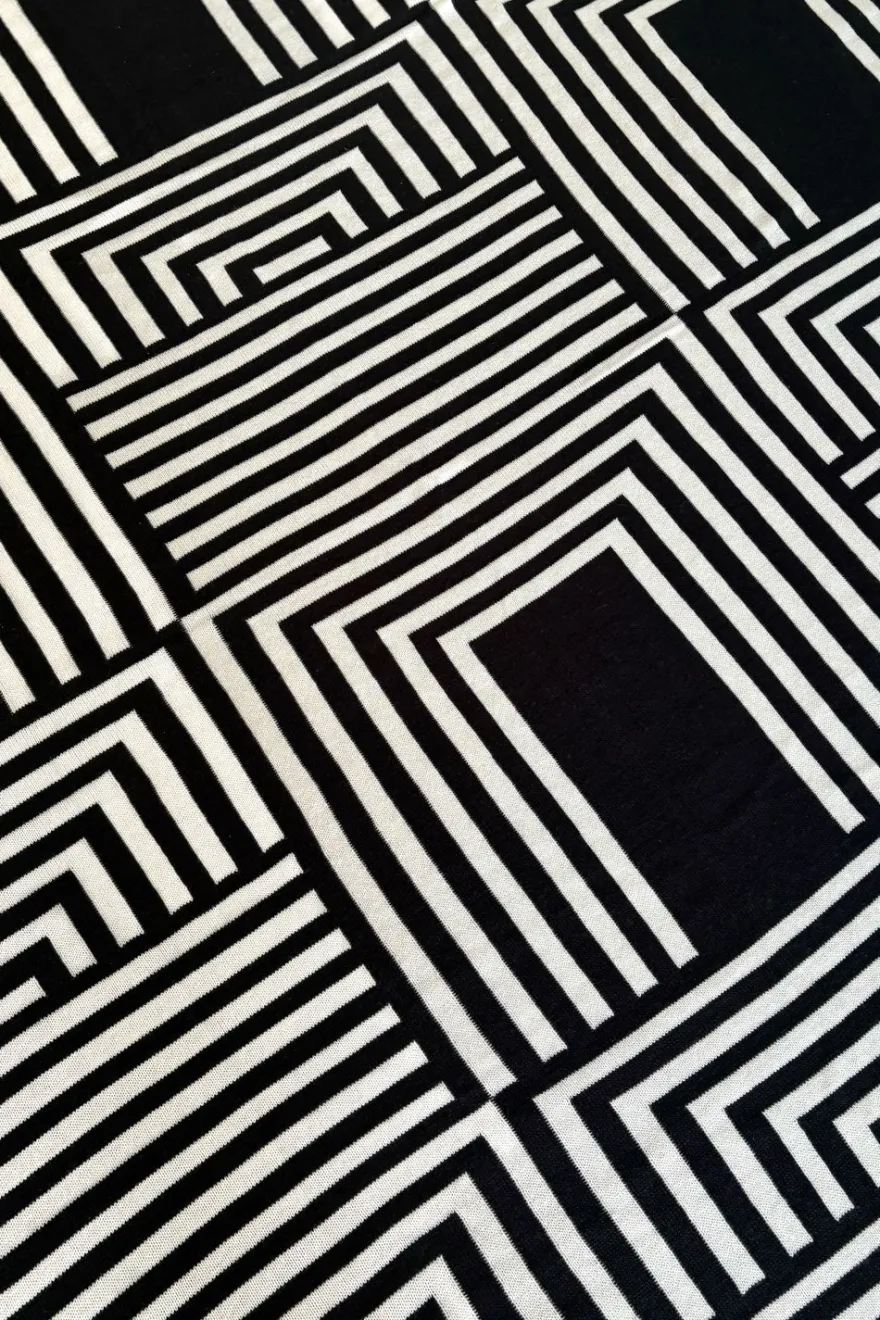 Nuestra manta de algodón reversible con diseño abstracto de rayas y cuadros blancos y negros es una pieza que combina suavidad, estilo y personalidad. Hecha en 100% algodón, es ligera pero acogedora, perfecta para cualquier estación del año.
