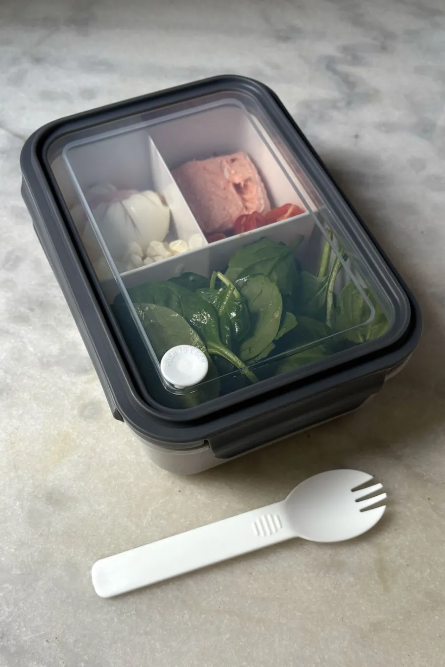 Fiambrera con tres compartimentos extraíbles, perfecta para llevar el almuerzo a la oficina, colegio, universidad o cualquier actividad al aire libre.