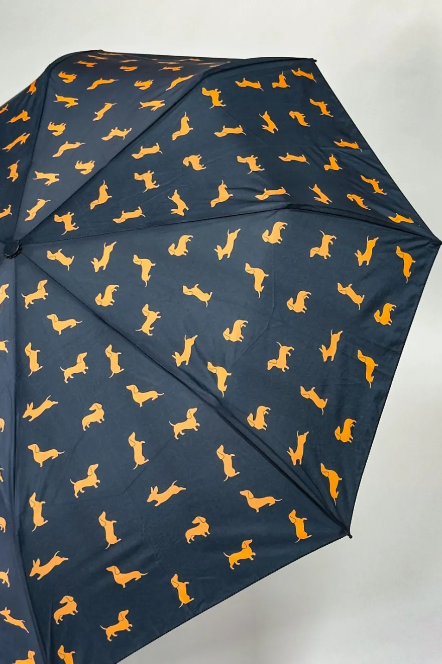 Paraguas con funda en forma de teckel y mango que simula la cola del perro, este paraguas combina diseño original, practicidad y encanto en un solo producto.