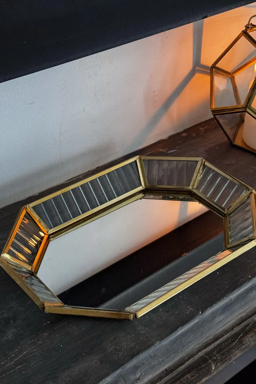 Esta elegante bandeja decorativa de cristal, adornada con detalles dorados, es una pieza que combina funcionalidad y estilo. Su diseño la convierte en un elemento perfecto para realzar cualquier ambiente, ya sea en una mesa de centro, o decorando cualquier rincón de la casa.