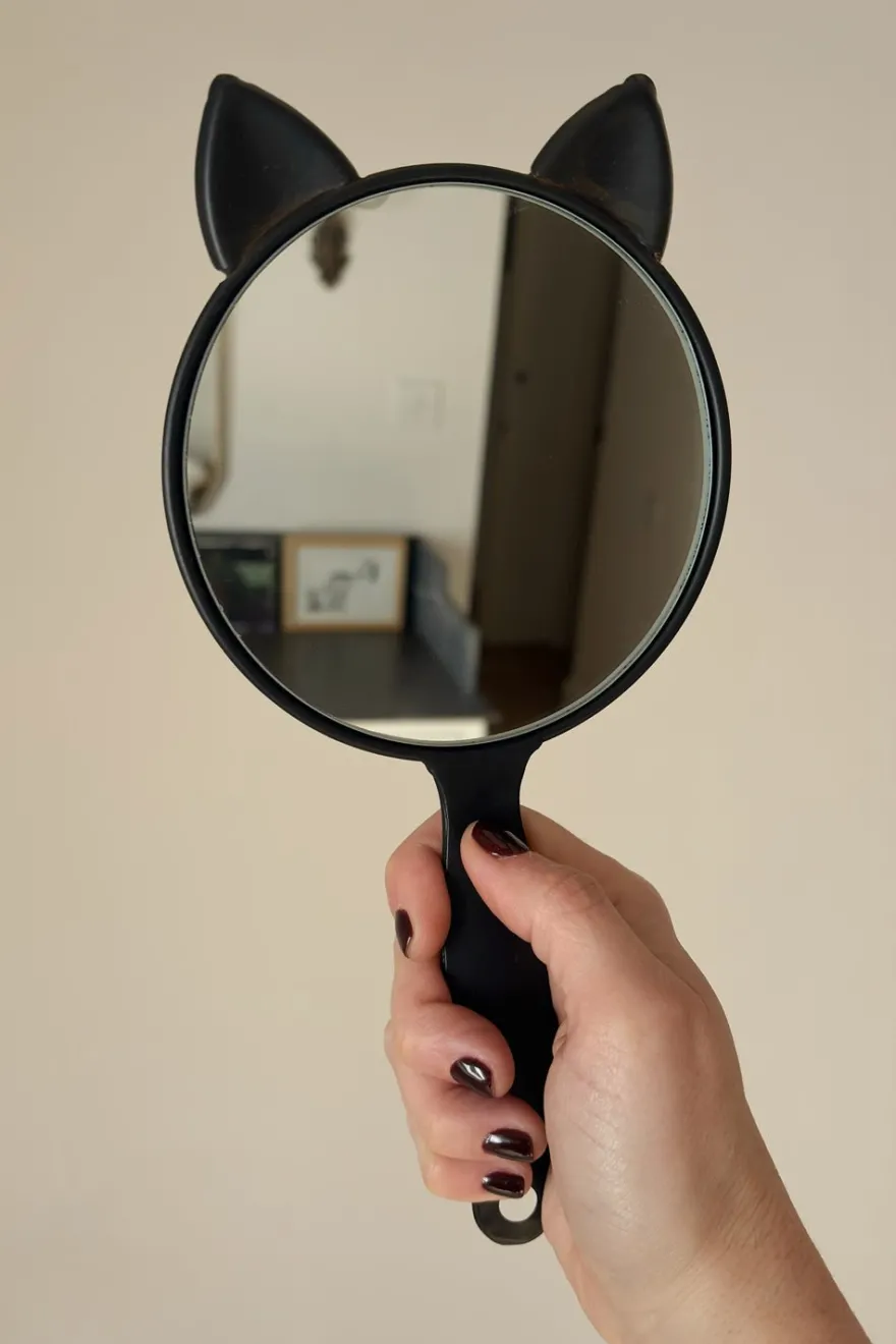 Este elegante espejo de mano presenta un diseño inspirado en la figura de un gato, que combina estilo y funcionalidad. Su tamaño compacto y ligero lo hace ideal para retoques rápidos o como un accesorio decorativo único.
