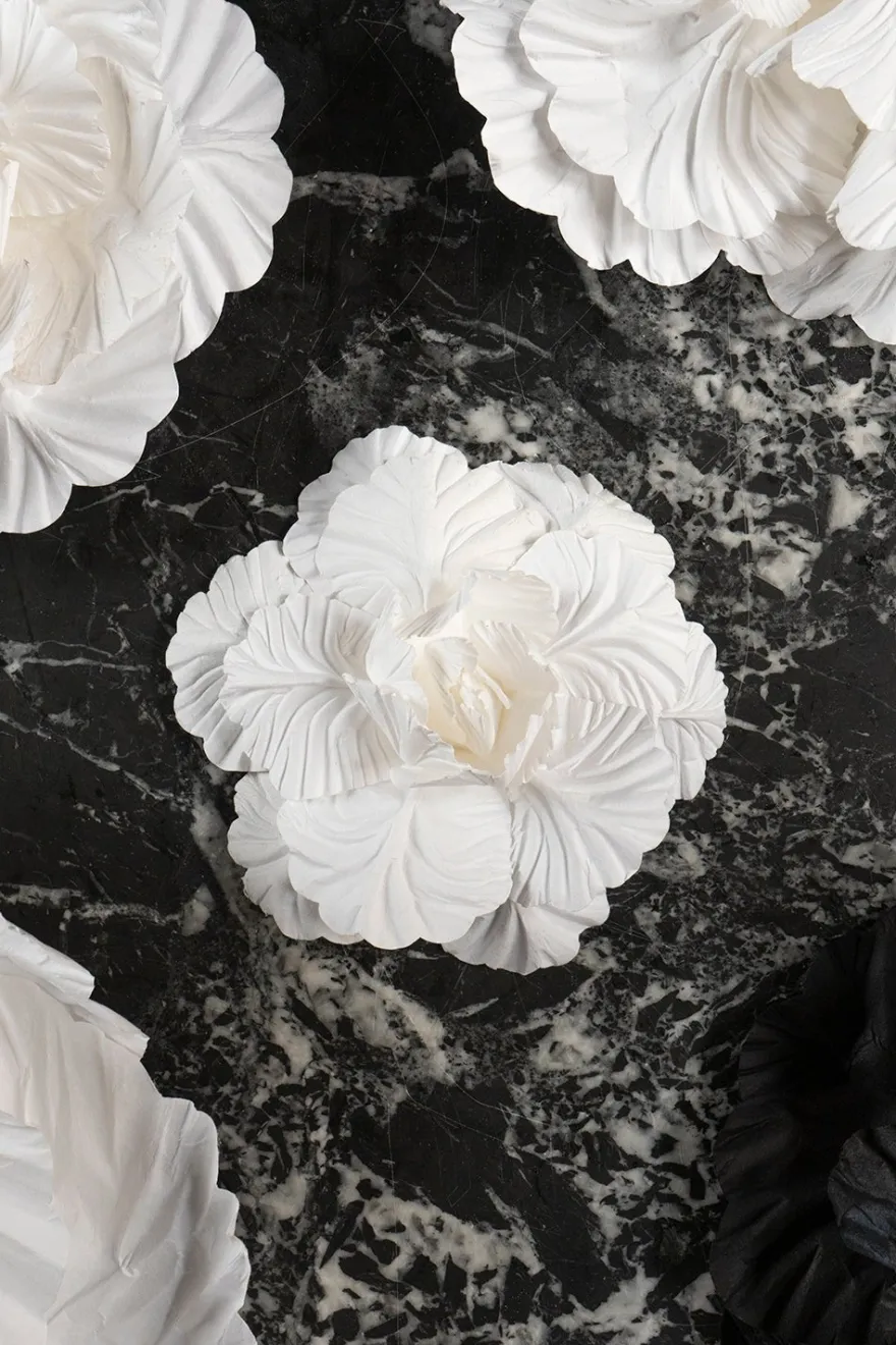 Flor iris de papel en color blanco tamaño pequeño, ideal para decorar cualquier espacio. Disponemos de otros tamaños distintos y también en color negro.