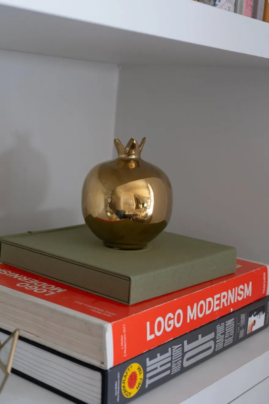 Granada decorativa de cerámica dorada, ideal para decorar cualquier rincón de tu casa durante las Navidades o en cualquier época del año.