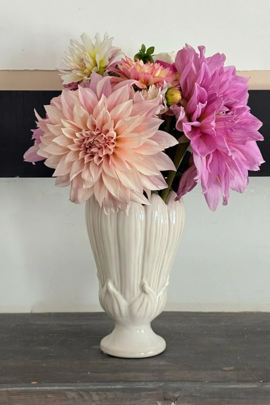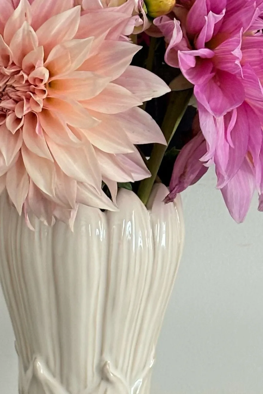 Este jarrón de loza fina esmaltada destaca por su elegante forma de bulbo blanco, que combina líneas suaves con un acabado brillante y pulido. Su diseño orgánico y minimalista lo convierte en una pieza decorativa atemporal, perfecta para realzar flores frescas, secas o simplemente lucirse como objeto de decoración.