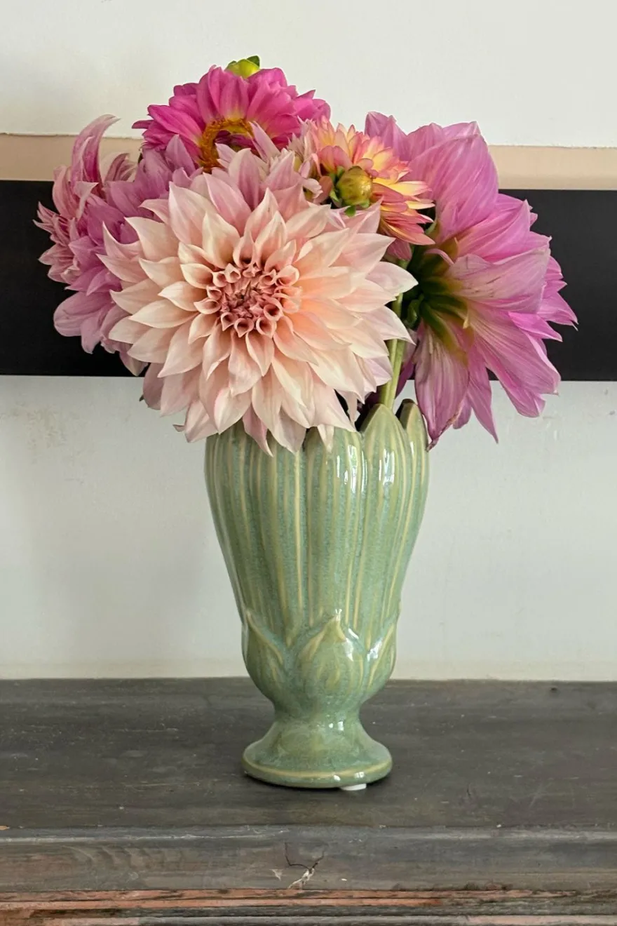 Este jarrón de loza fina esmaltada destaca por su elegante forma de bulbo verde, que combina líneas suaves con un acabado brillante y pulido. Su diseño orgánico y minimalista lo convierte en una pieza decorativa atemporal, perfecta para realzar flores frescas, secas o simplemente lucirse como objeto de decoración.
