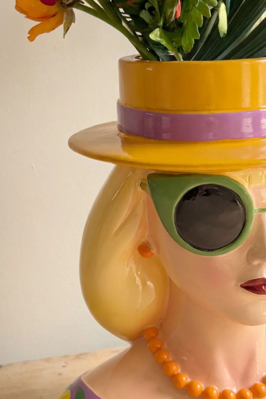 Original jarrón decorativo con diseño de busto de mujer fashion, una pieza llamativa y llena de personalidad. Destaca por su estilo artístico y colores alegres, que lo convierten en un auténtico elemento decorativo. Puede utilizarse tanto como jarrón para flores como pieza decorativa por sí sola, aportando un toque moderno, creativo y sofisticado a cualquier espacio. Ideal para salones, recibidores o estanterías donde se busque un detalle único y con carácter.