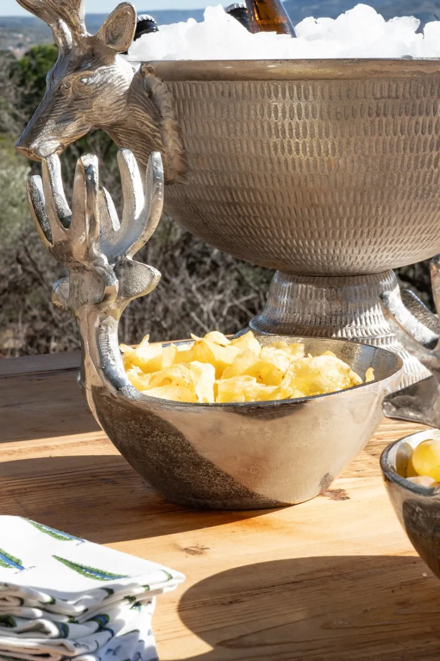Recipiente de aluminio mediano con diseño de ciervo, ideal para complementar tus mesas o incluso para decorar cualquier rincón de tu casa.