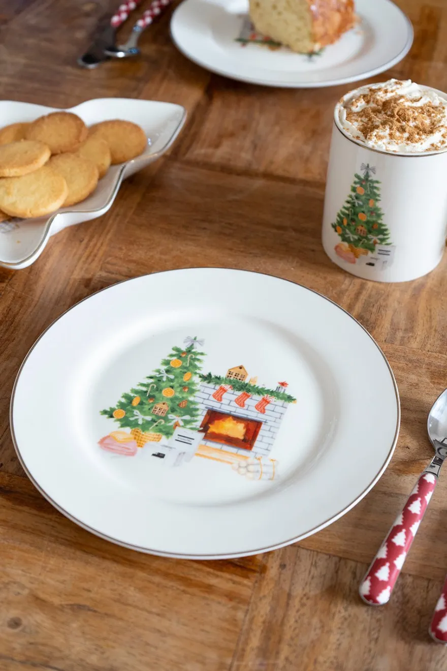 Ideal para complementar tu mesa estas Navidades, ya que cuenta con la ilustración de un árbol de navidad con regalos y una chimenea, y con un delicado filo en color dorado decorando que le da un toque muy especial.