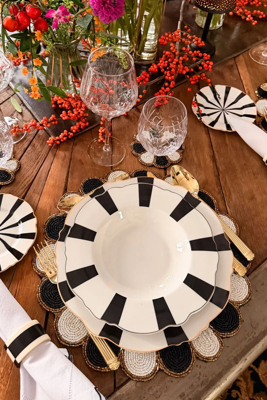 Nuevo plato hondo con diseño de rayas de New Bone China, reconocida por ser muy fina, ligera y resistente, de nuestra vajilla blanca y negra.