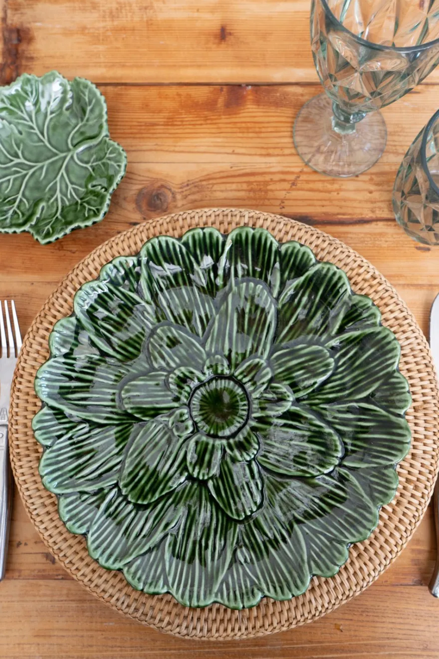 Plato llano de cerámica con diseño de flor de alcachofa, ideal para dar un toque fresco, original y diferente a tus mesas durante cualquier época del año.