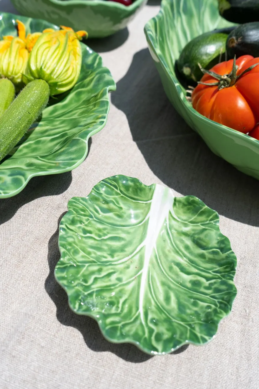 Plato mini con diseño de hoja de col de nuestra vajilla de melamina, ideal para complementar y dar un toque fresco, original y diferente a tus mesas este verano.