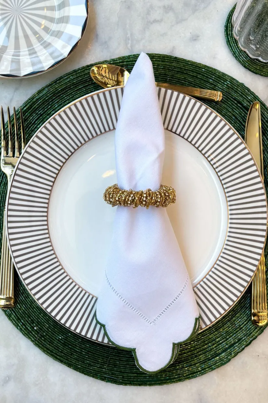 Puedes combinarlos con otras piezas de nuestra colección bordada con cuentas, como individuales y posavasos.