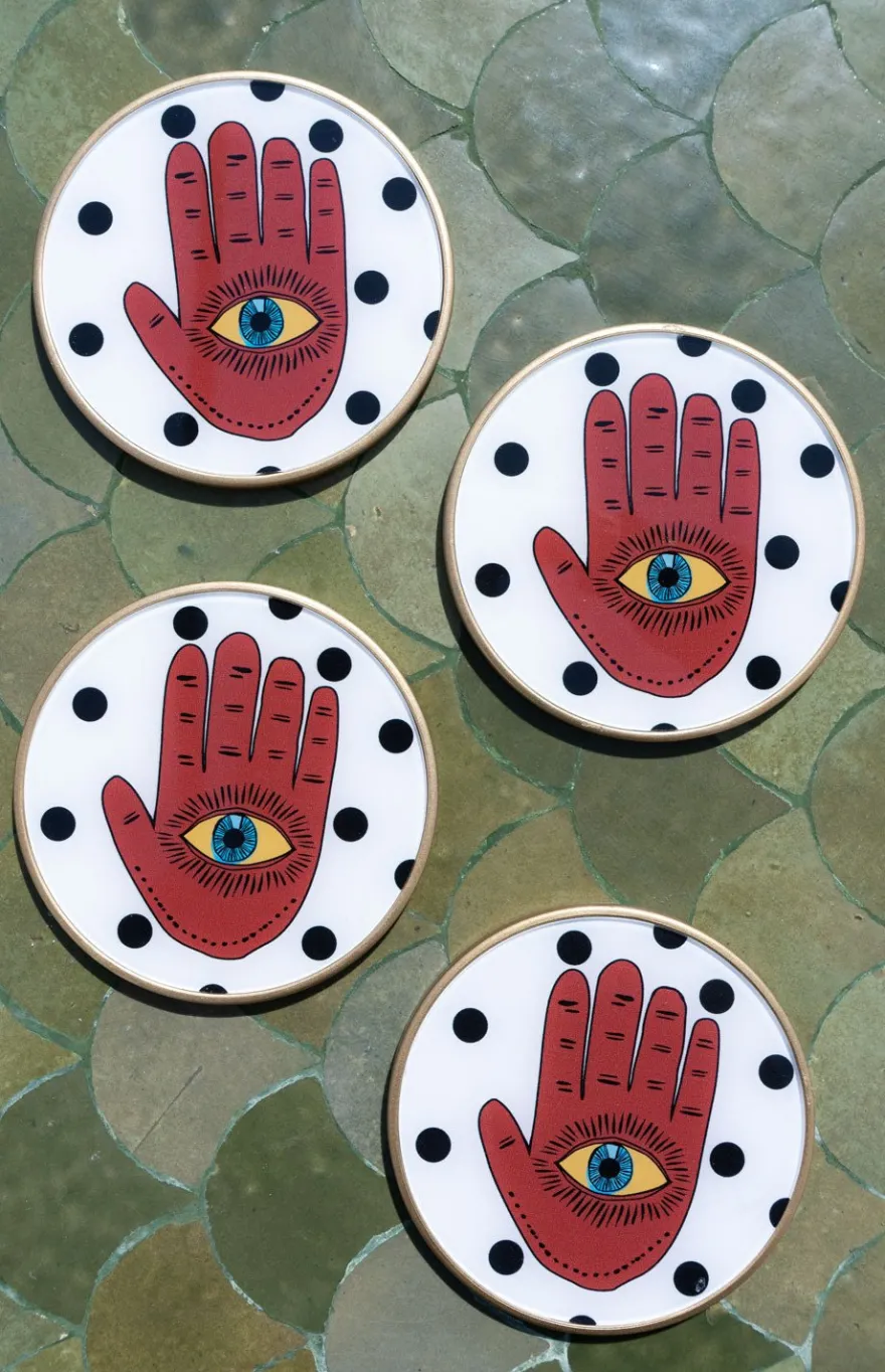 Set de cuatro posavasos de porcelana con diseño «good luck», original y perfecto para complementar tus mesas en cualquier época del año.