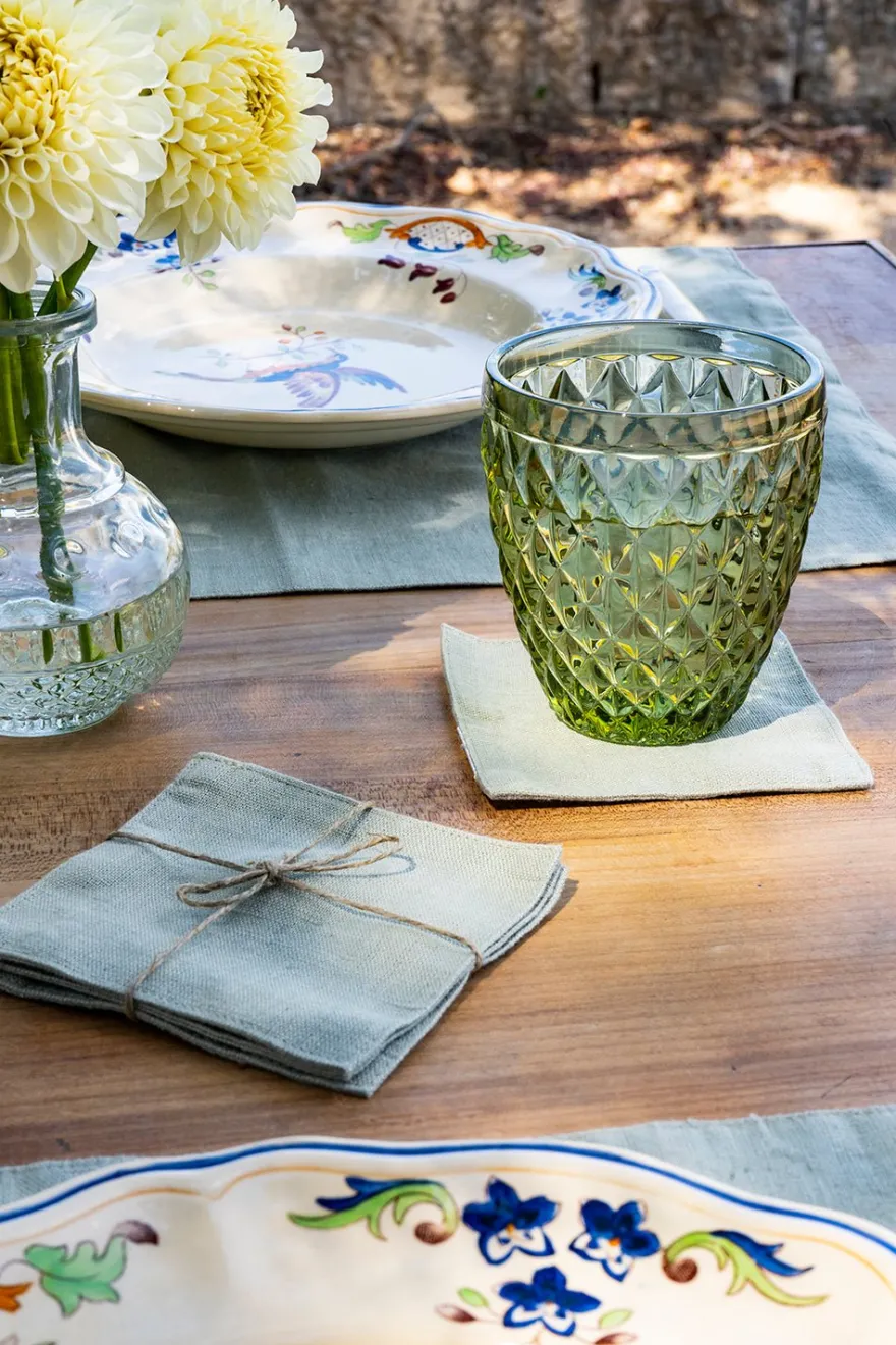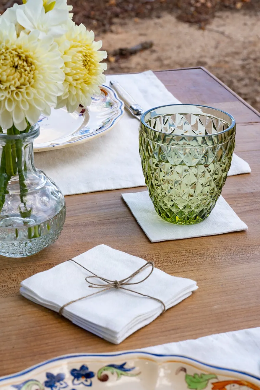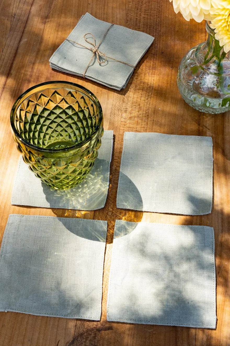 Set de cuatro posavasos de lino hechos a mano, disponible en una amplia gama de colores, que le dará un aspecto fresco, elegante y lujoso a tu mesa. Se pueden usar a diario o para una gran celebración.