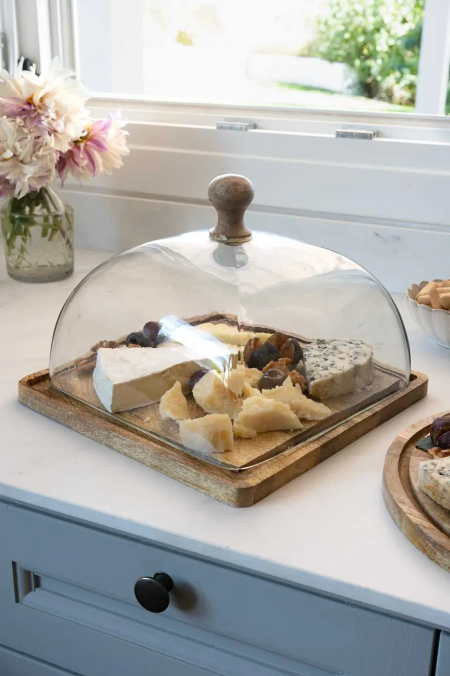 Quesera con tapa de cristal perfecta para conservar y presentar quesos, embutidos, bizcochos y tartas. Su base de madera de bambú es ideal para presentarlos en la mesa, y su tapa de vidrio permite mantenerlos en perfecto estado.