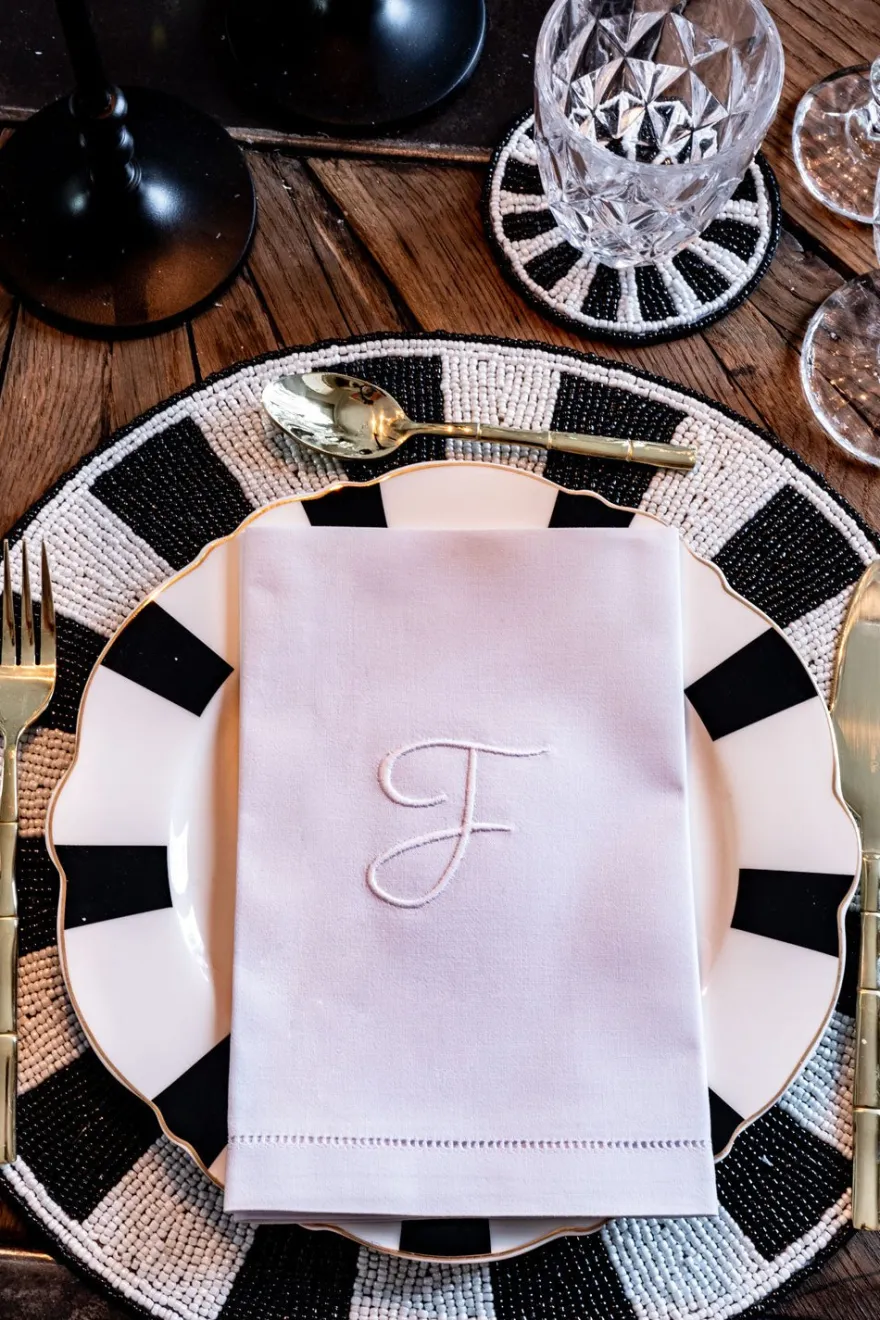 En cada servilleta, se ha bordado cuidadosamente una inicial del abecedario, personalizando cada pieza y haciéndola ideal tanto para uso diario como para ocasiones especiales.