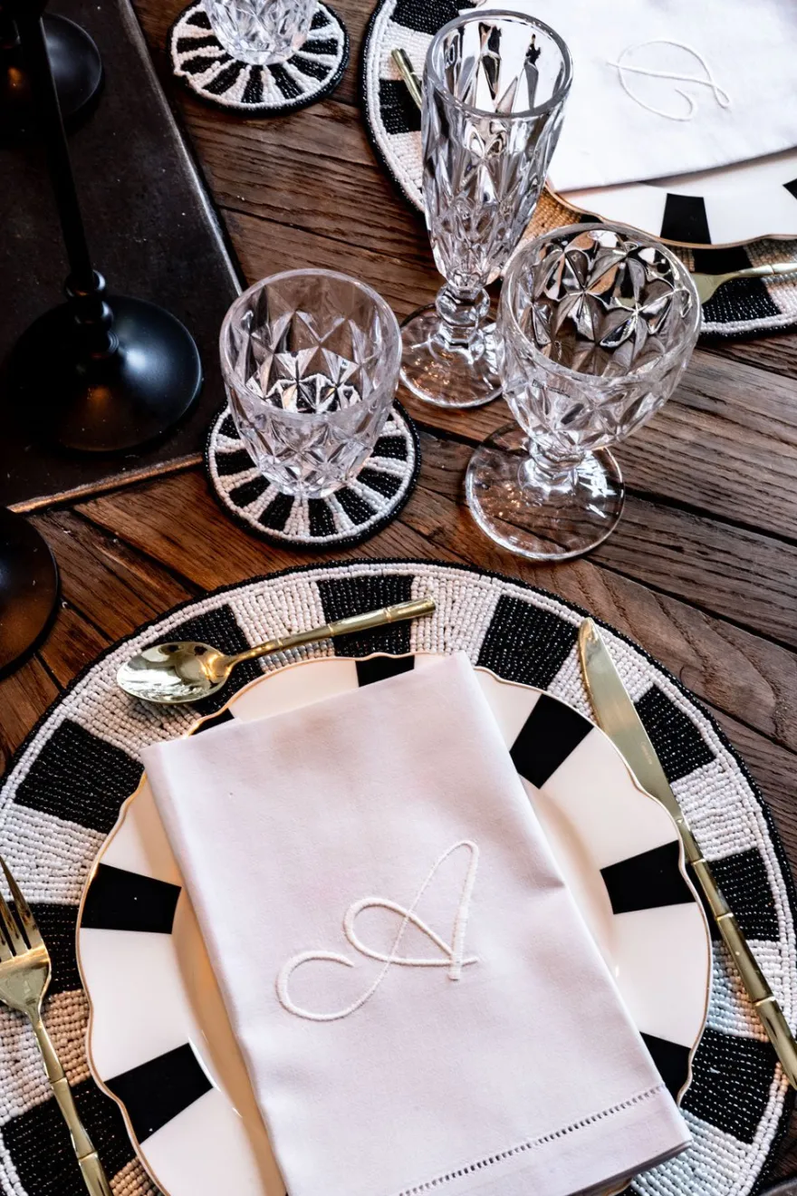 Cristina Oria Servilletas Y Accesorios|Menaje Iniciales^Servilleta De Algodón Con Detalle Vainica Inicial S