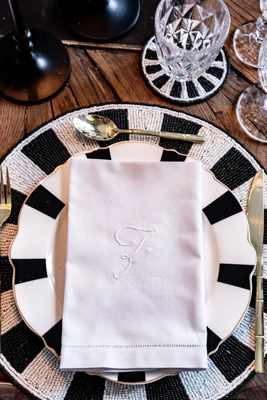 En cada servilleta, se ha bordado cuidadosamente una inicial del abecedario, personalizando cada pieza y haciéndola ideal tanto para uso diario como para ocasiones especiales.