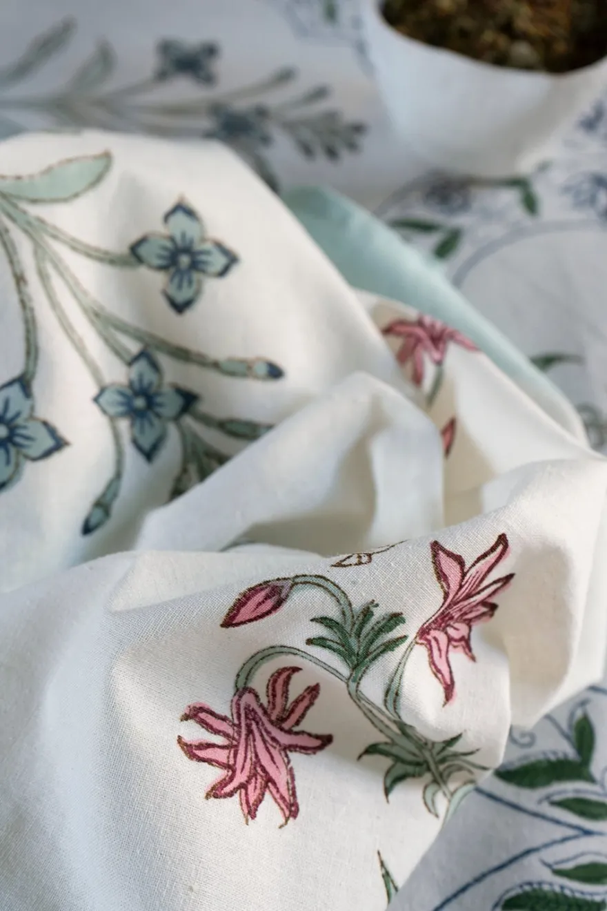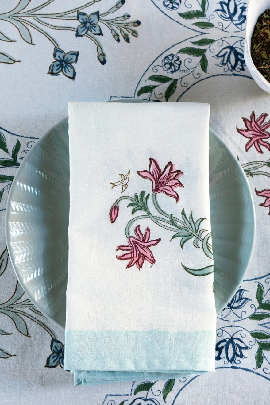 Servilleta 100% algodón con diseño Asha, cuyo significado es “Esperanza”, pintada a mano en la India.