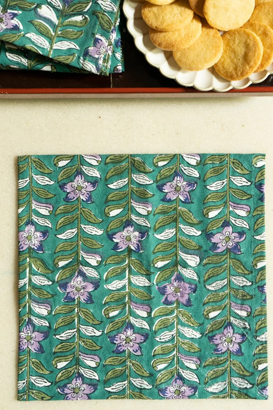 Servilleta cocktail 100% algodón con diseño Uma, cuyo significado es “Tranquilidad”, pintada a mano en la India.