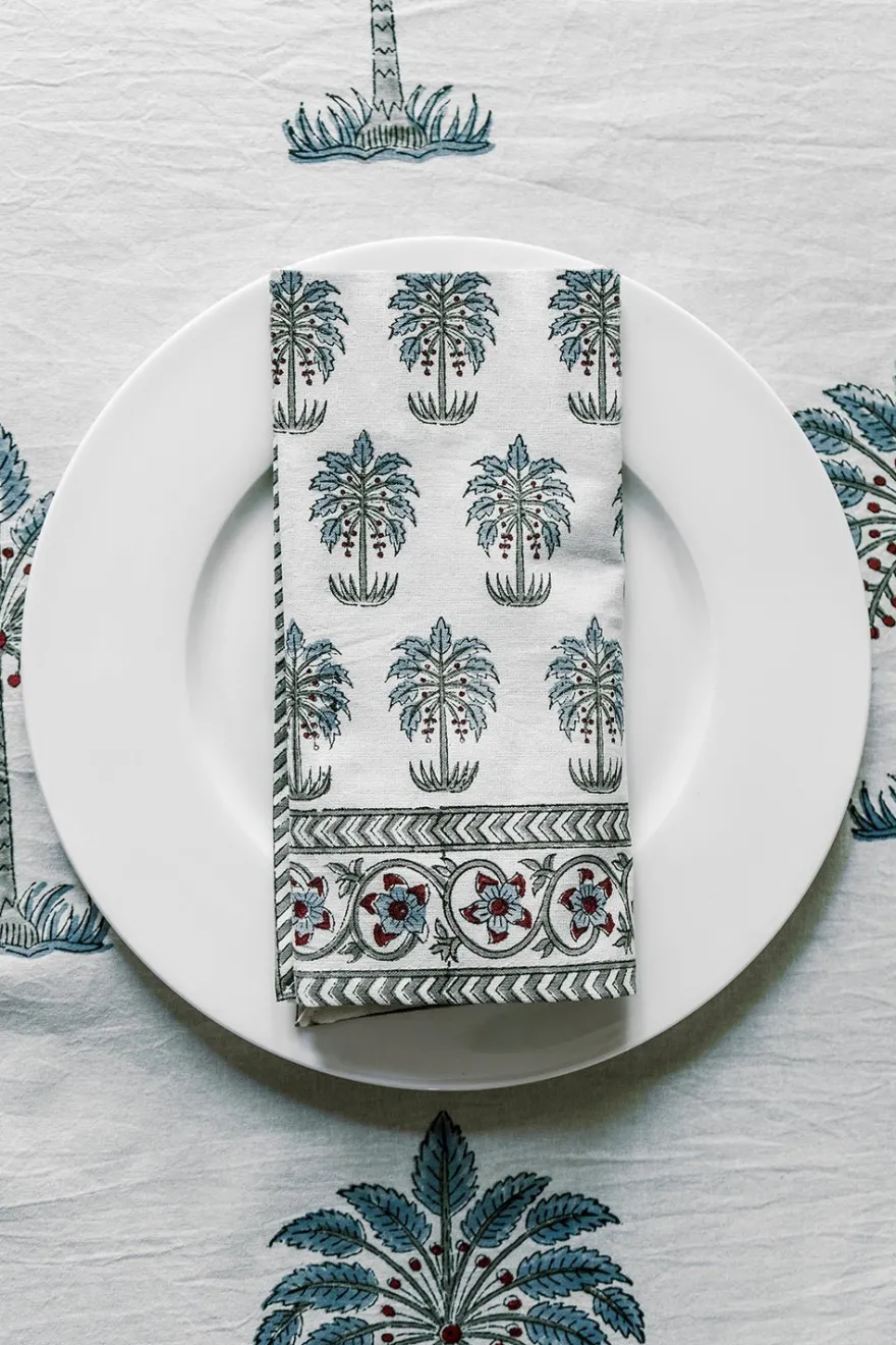 Servilleta 100% algodón con diseño Indira, cuyo significado es “Belleza”, pintada a mano en la India.