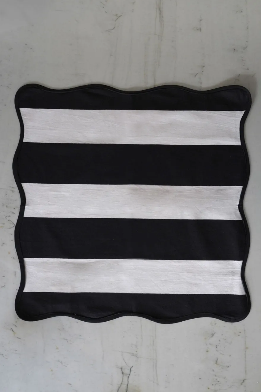 Servilleta de 100% algodón con borde ondulado y diseño de rayas blancas y negras pintada a mano en la India. Perfecta para celebraciones, comidas al aire libre o simplemente para alegrar el día a día.