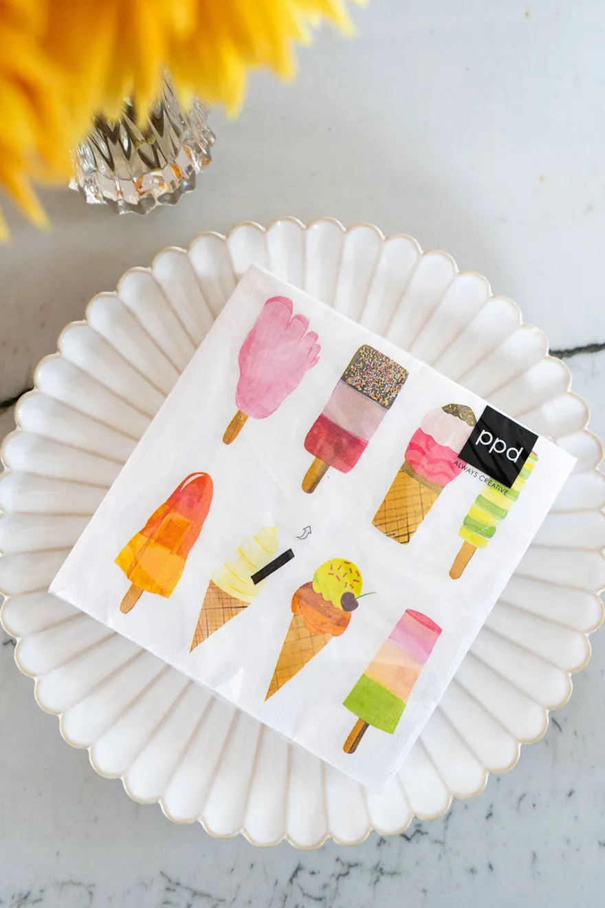 Servilletas de papel con ilustración de helados, ideales para complementar tu mesa este verano.