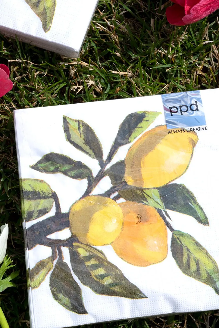 Servilletas de papel con ilustración de limones, ideales para complementar tu mesa.
