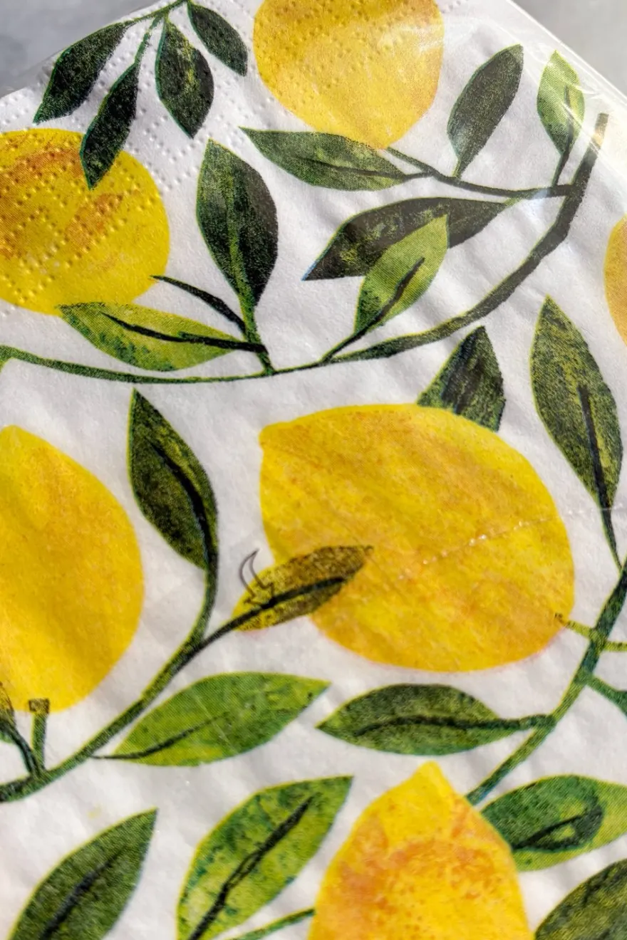 Servilletas de papel con diseño de limones y hojas, ideales y originales para complementar tu mesa.