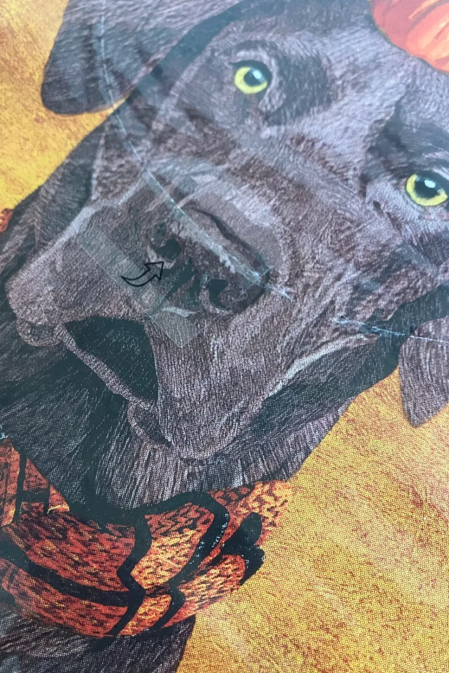 Servilletas de papel con ilustración de perro labrador con una calabaza en su cabeza, originales e ideales para complementar tu mesa en Halloween y otoño.