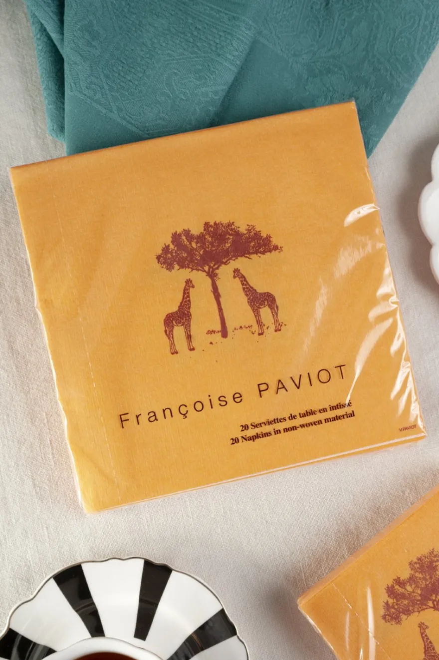 Servilletas de papel con diseño de jirafa en fondo amarillo.