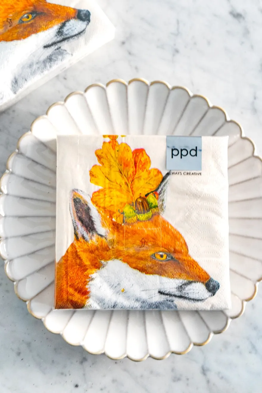 Servilletas de papel con ilustración de zorro, ideales para complementar tu mesa.