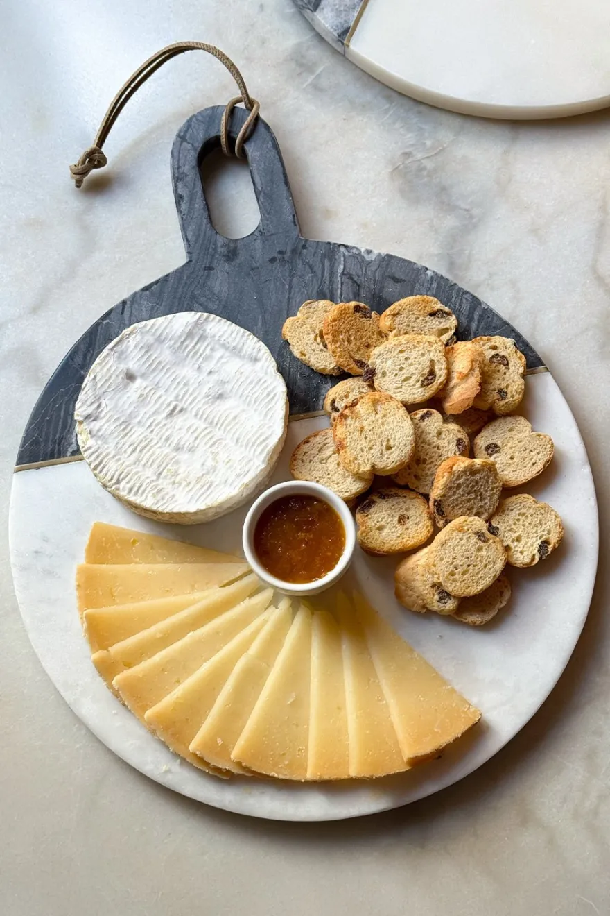 Tabla de mármol redonda de color negra y blanca, ideal para complementar tus mesas en cualquier época del año. Esta tabla combina elegancia, sofisticación y durabilidad.