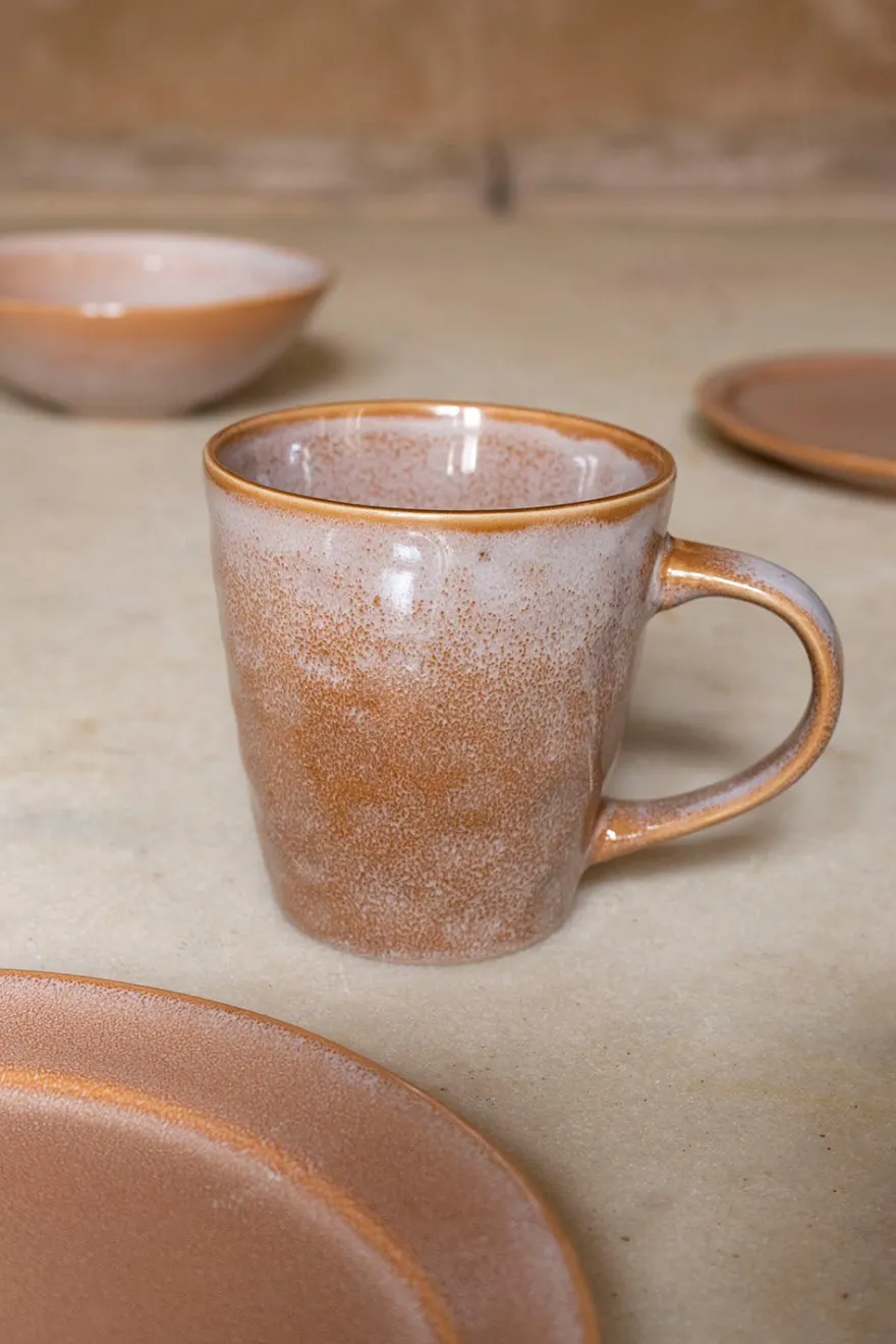 Taza de gres con diseño ligeramente irregular y estilo artesanal.