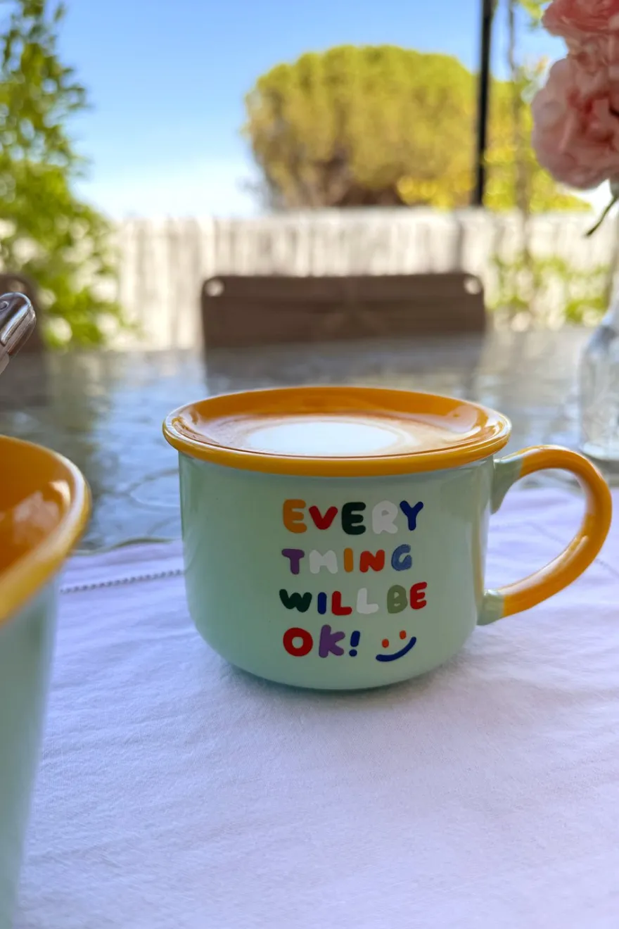 Original taza de new bone con diseño de colores y mensaje «happy», ideal para complementar y dar un toque fresco, original y diferente a tus mesas.