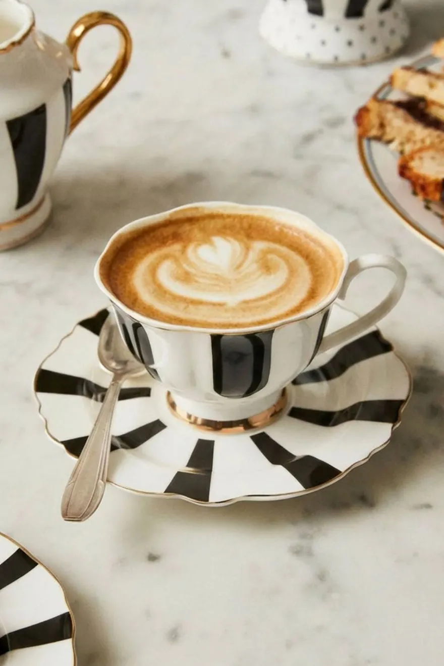 Sin duda, sorprenderás a tus invitados en la sobremesa con este juego de taza y plato de té, diseñado con nuestros emblemáticos colores “blanco y negro” y con un delicado filo dorado decorando, que le dará a tu mesa el toque elegante que estabas buscando.