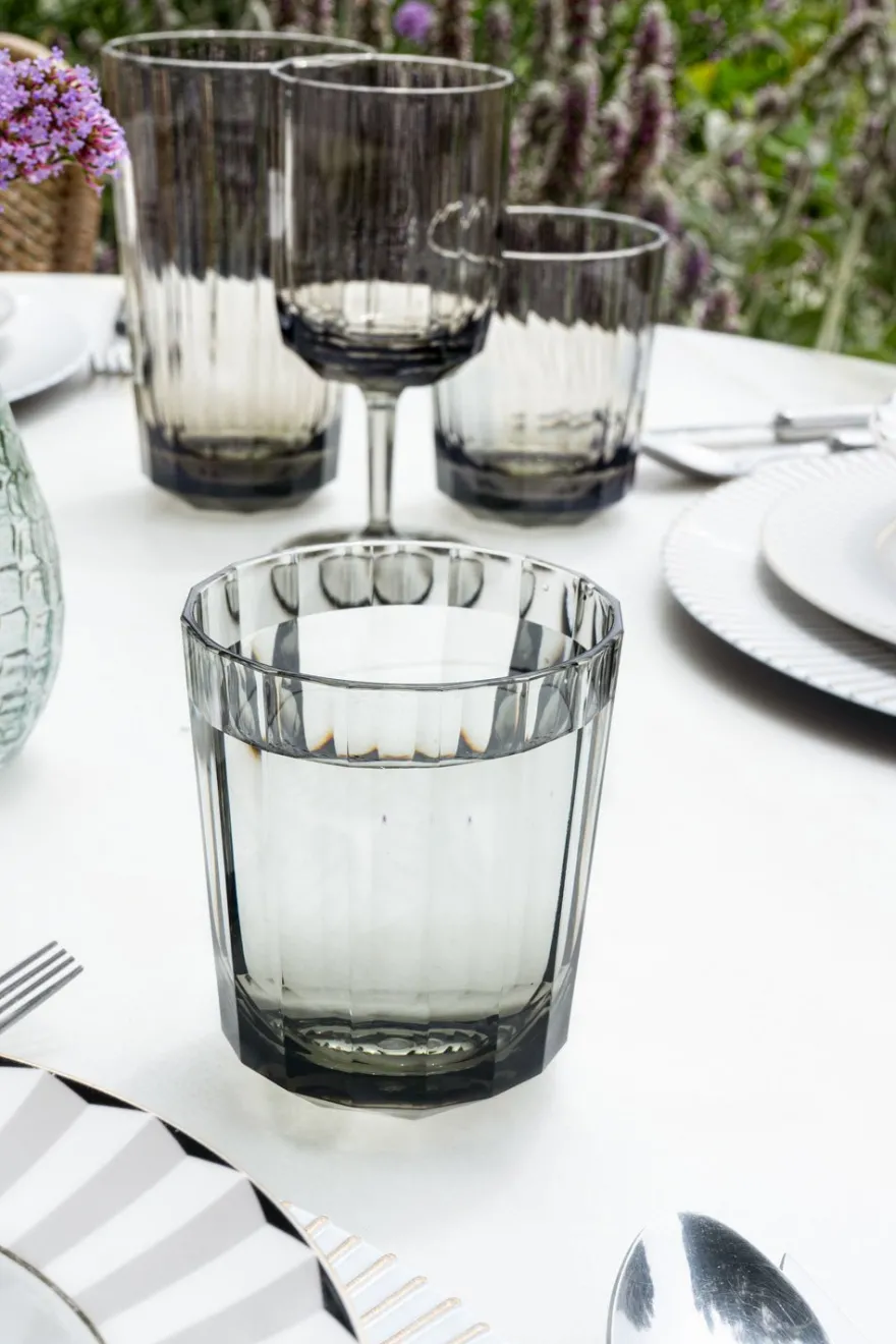 Set de seis vasos de nuestra cristalería acrílica en tono gris que combina el aspecto del vidrio con la durabilidad del acrílico.