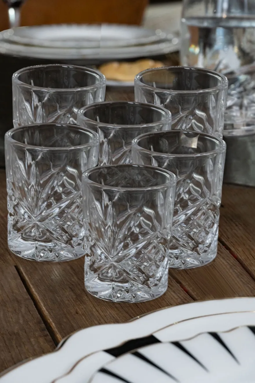 Set de seis vasos minis tallados con diseño de racimo de espigas, de vidrio sodocálcico muy resistentes. Tienen el tamaño perfecto para servir cremas o postres individuales.
