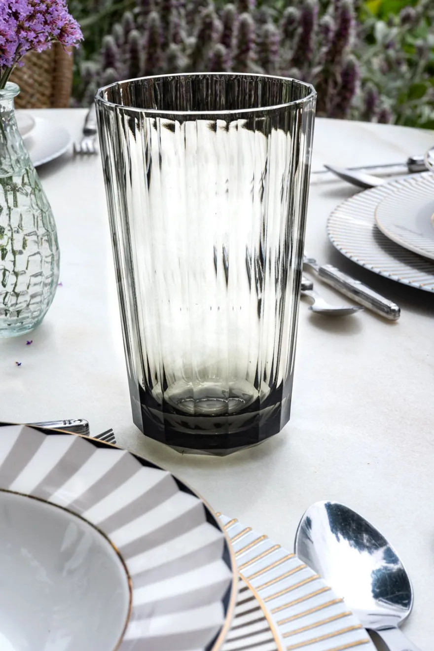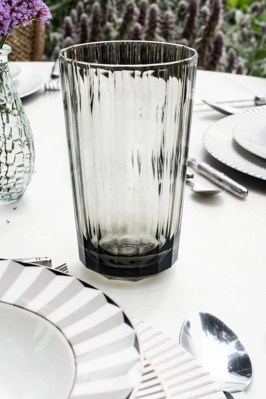 Vaso grande de nuestra cristalería acrílica en tono gris que combina el aspecto del vidrio con la durabilidad del acrílico.