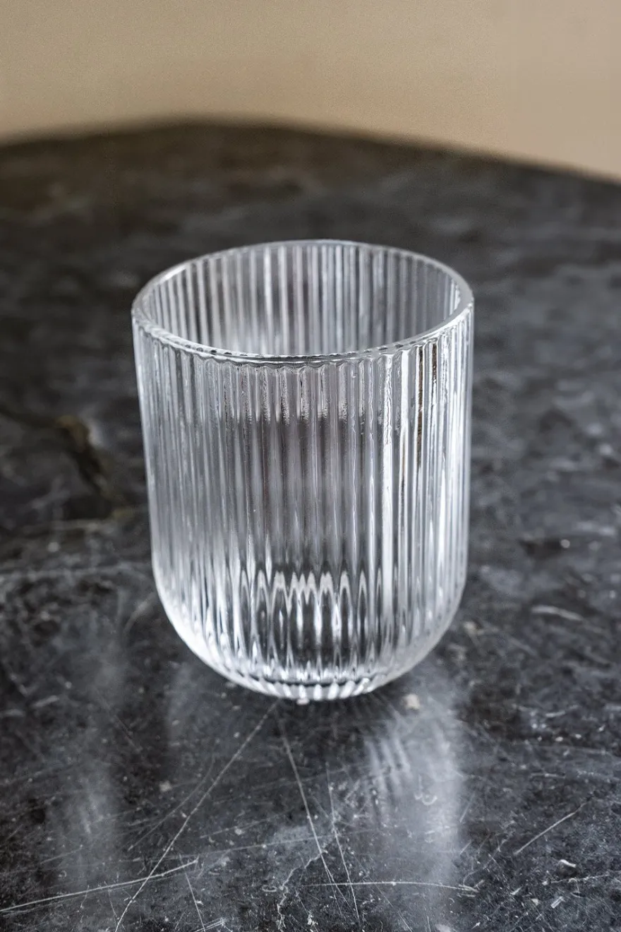 Vaso de cristal transparente con diseño tallado, que aporta sofisticación y estilo a cualquier mesa. Su delicado grabado y la claridad del cristal hacen de esta pieza una opción ideal tanto para ocasiones especiales como para el uso diario.