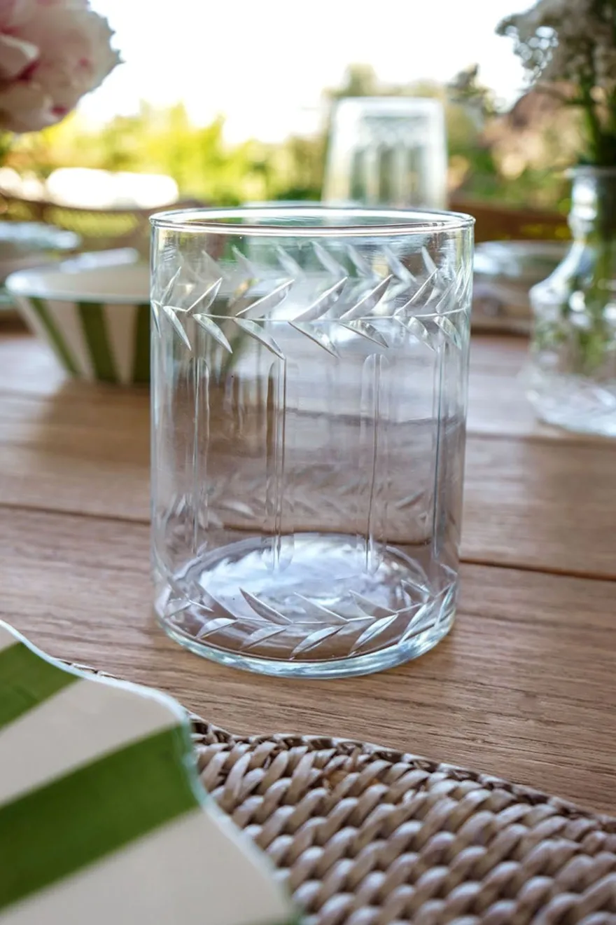 Vaso grande de nuestra cristalería de cristal soplado y tallada a mano que destaca por su elegancia atemporal y su meticuloso trabajo artesanal. Las irregularidades del diseño hacen única cada pieza.