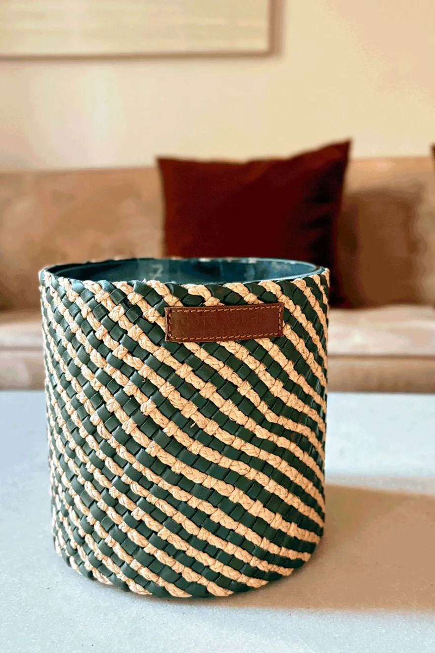 - Cuero caqui y rafia
