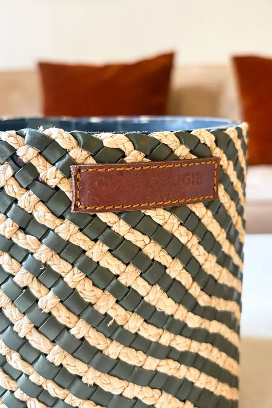 La elegancia artesanal y el saber hacer marroquí se unen en esta vela de cuero y rafia trenzada a mano, ofreciendo un viaje olfativo a través de Marruecos. Cada vela es única y artesanal.