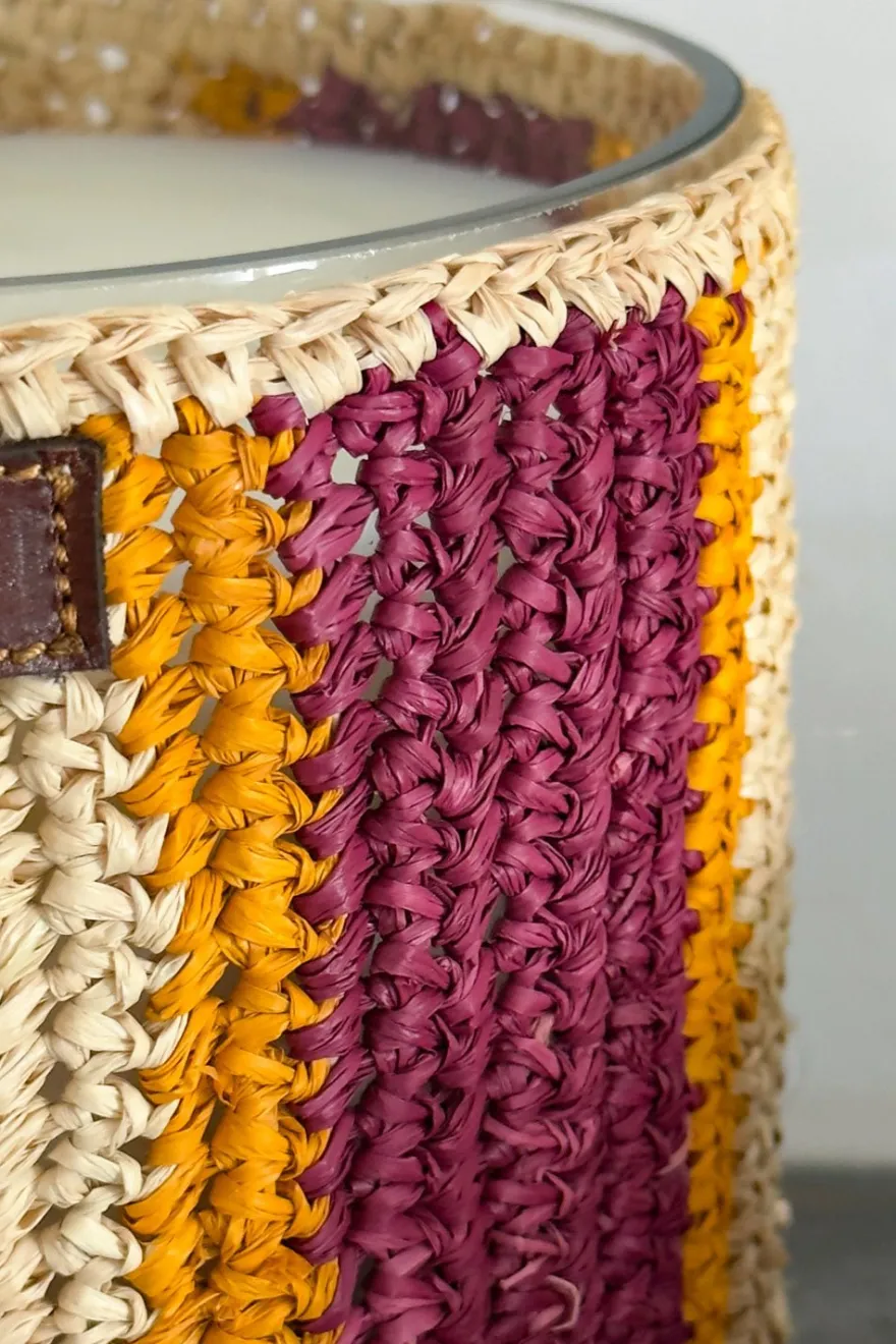 La elegancia artesanal y el saber hacer marroquí se unen en esta vela de rafia trenzada a mano, ofreciendo un viaje olfativo a través de Marruecos. Cada vela es única y artesanal.