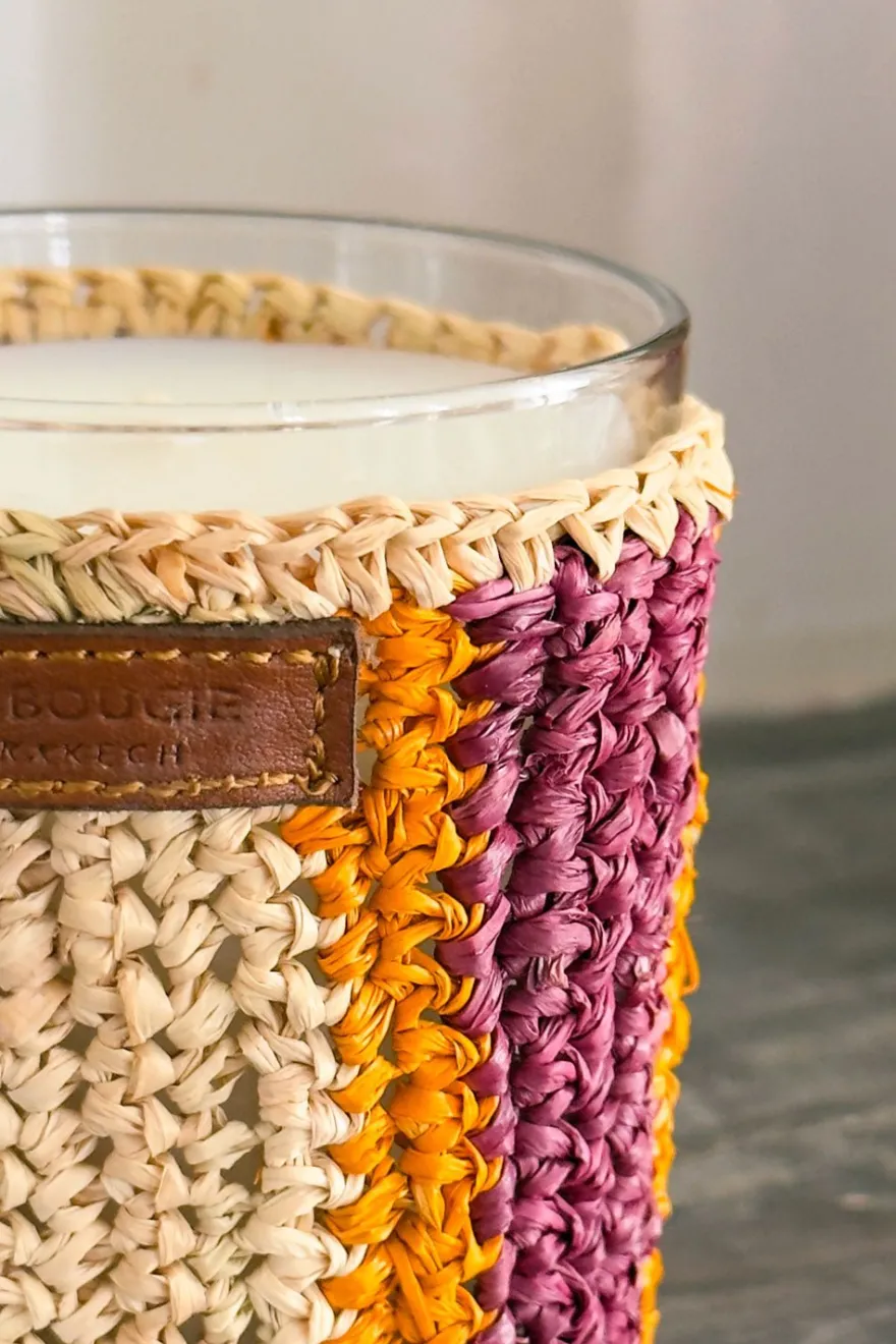 La elegancia artesanal y el saber hacer marroquí se unen en esta vela de rafia trenzada a mano, ofreciendo un viaje olfativo a través de Marruecos. Cada vela es única y artesanal.