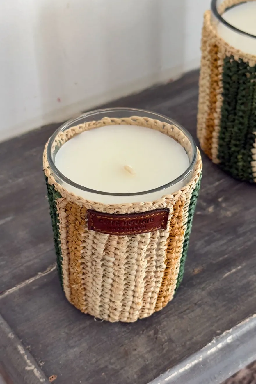 La elegancia artesanal y el saber hacer marroquí se unen en esta vela de rafia trenzada a mano, ofreciendo un viaje olfativo a través de Marruecos. Cada vela es única y artesanal.
