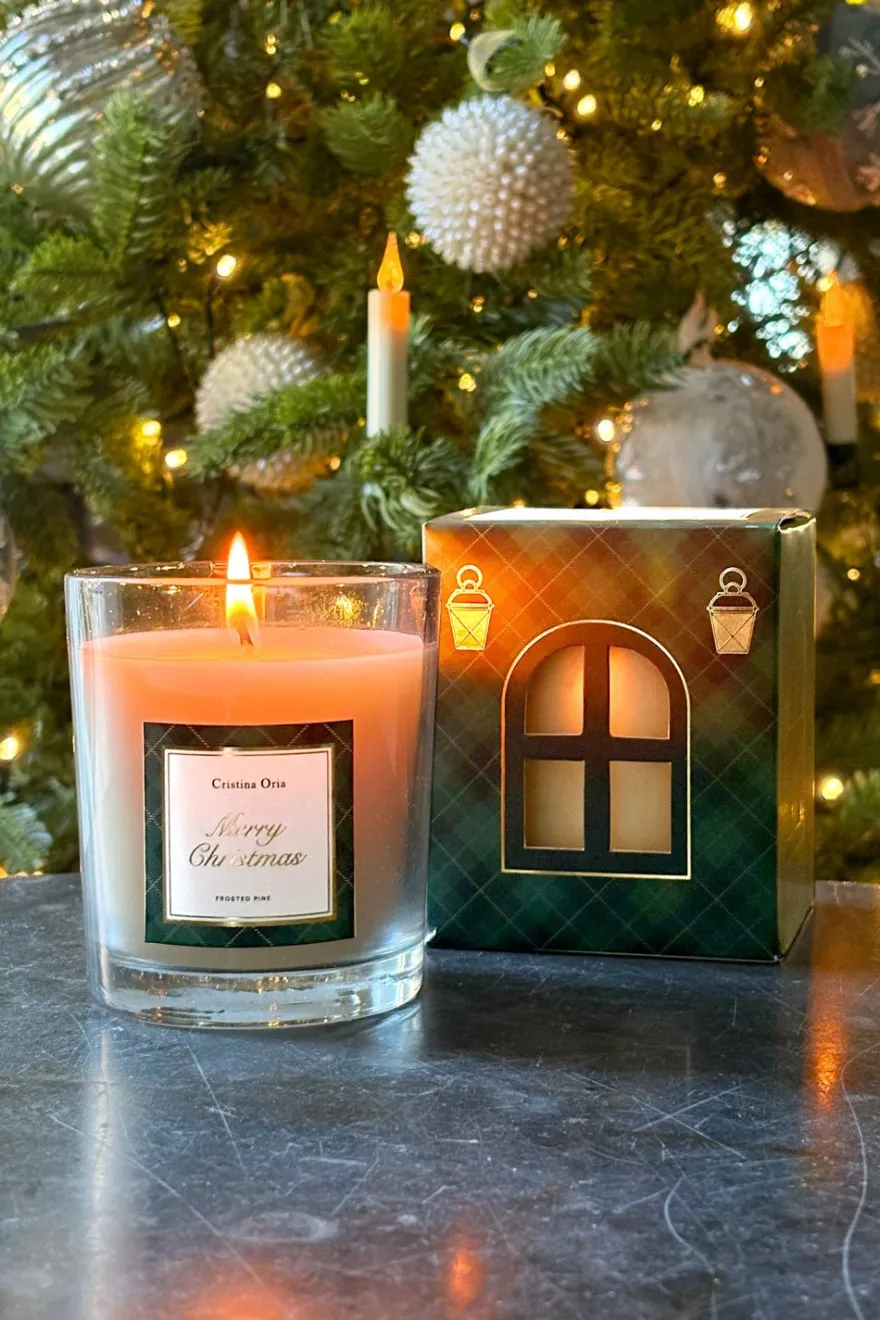 Vela en vaso de cristal transparente que resalta la calidez de su luz, con una fragancia a Frosted Pine que recuerda a la frescura y tranquilidad del bosque en invierno. Decorada con el mensaje Merry Christmas, es el detalle ideal para crear un ambiente acogedor y festivo. Presentada en una elegante caja de regalo, perfecta para regalar y celebrar la magia de la Navidad.