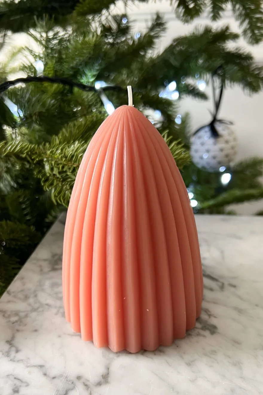Vela de cera con relieve y forma de cono, original e ideal para decorar cualquier rincón de tu casa.