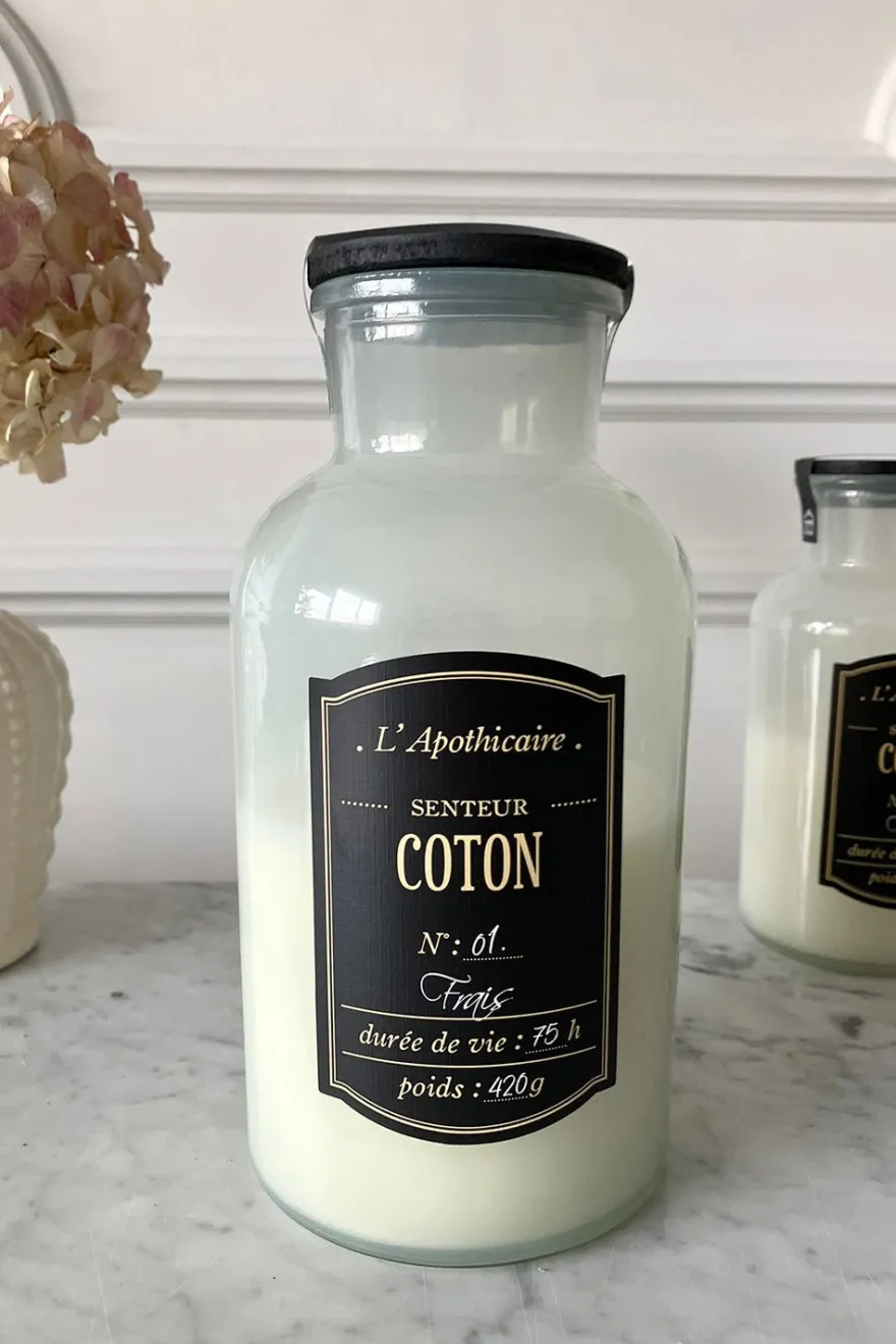 Velas perfumadas en frasco de vidrio y tapón de color negro.