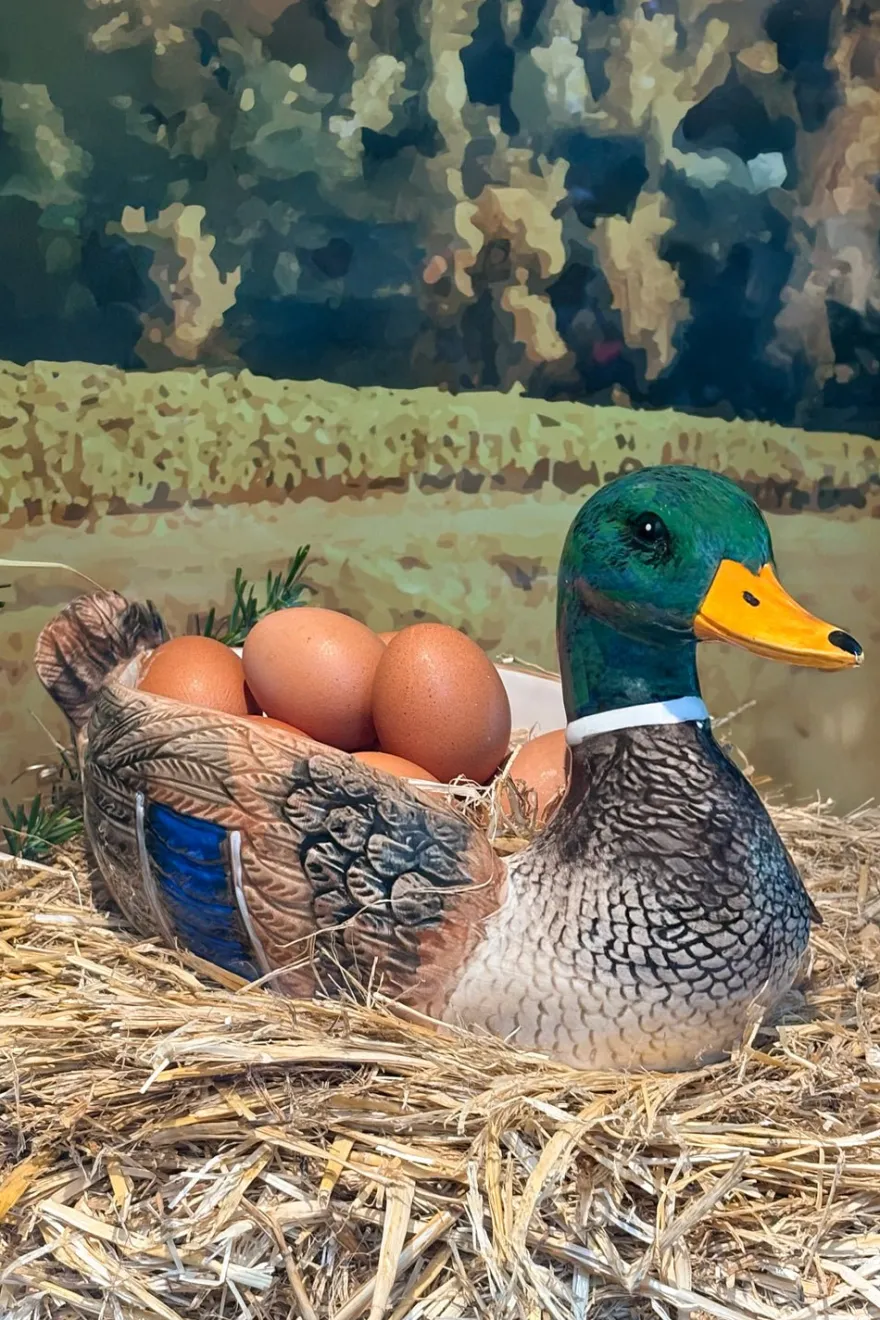 Este centro de mesa de porcelana , elaborado artesanalmente, presenta un delicado diseño de figura de pato que le da un toque especial y natural. Perfecto tanto para usar como centro de mesa, frutero o para guardar los huevos y complementar tus mesas con un detalle único.